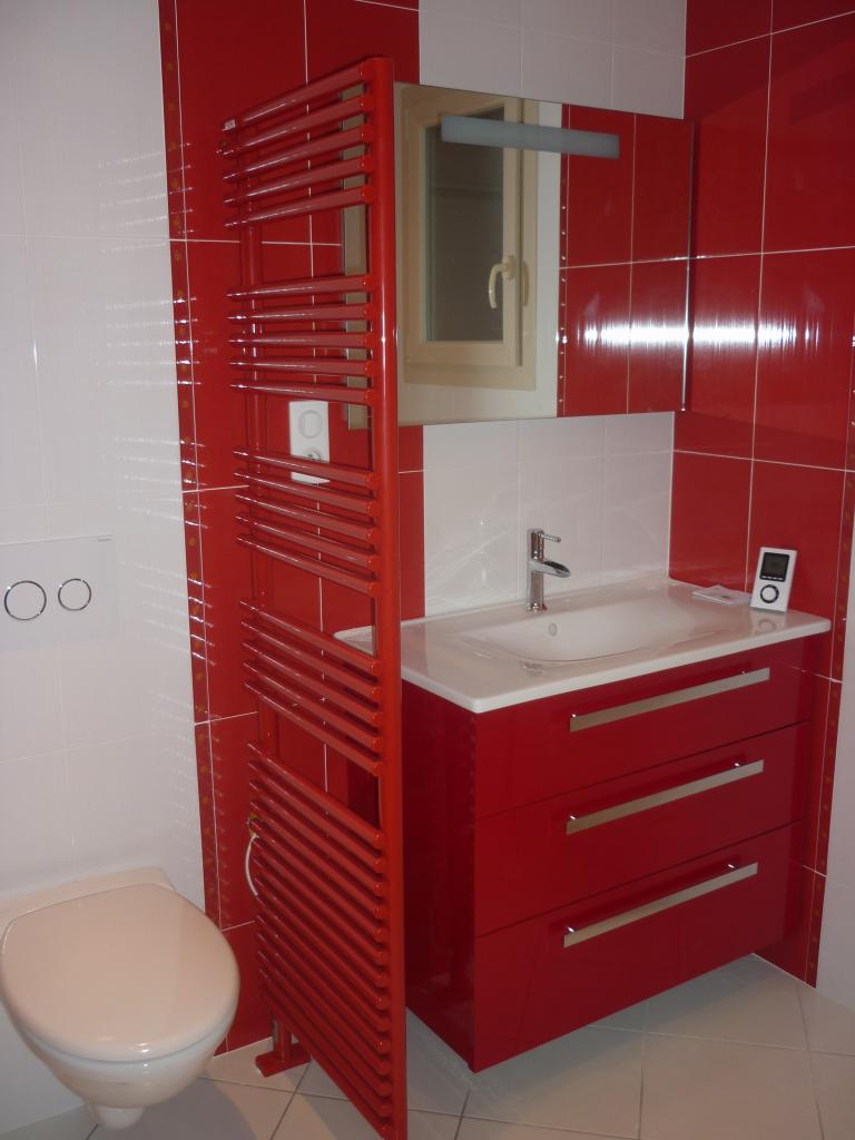 Meuble vasque, radiateur sèche serviette installé en claustra